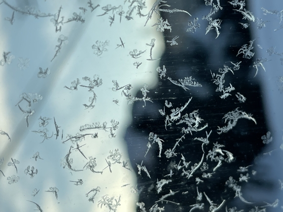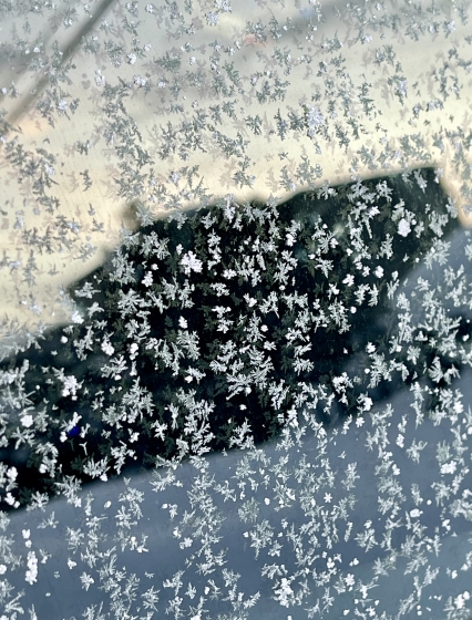 車の窓の結晶は羽毛のようです。