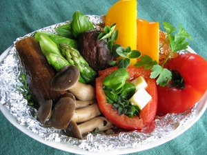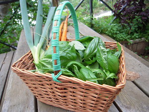 園内のハーブや野菜を使って