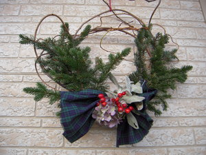 リースを作り玄関に飾りました。