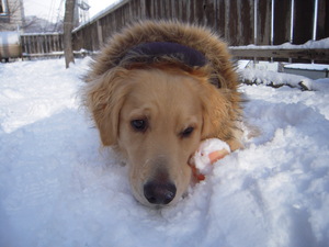 庭で雪遊びが増えて
