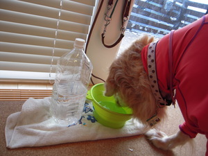 道中、かかりつけの動物病院へ寄り