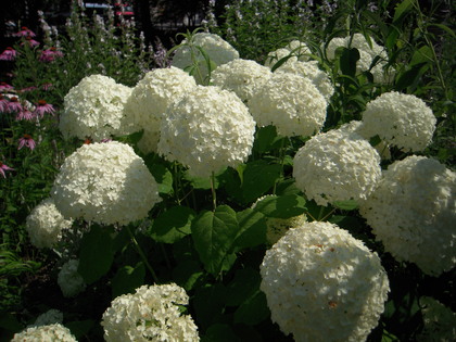 店舗入り口もオリーブ館前庭もアナベルが花盛りです♪