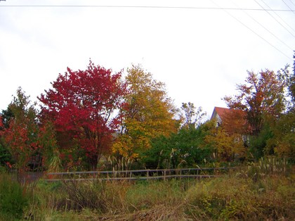 お隣の空き地の木々もきれいな赤と黄色に。