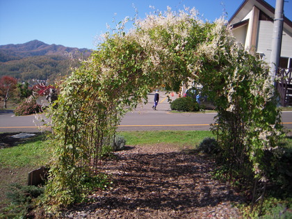 なつゆきかずらのアーチ、まだきれいに咲いています。