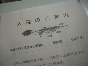 はい、では今日から入院です。と