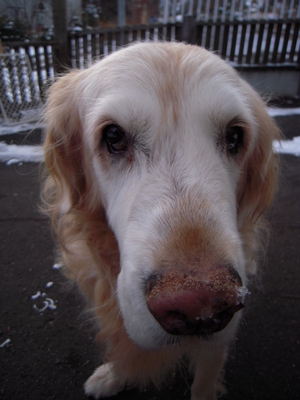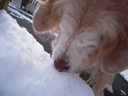 白くて美味しそうな雪をパクパク食べるみふぃ。