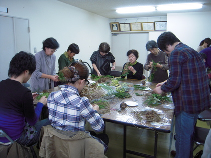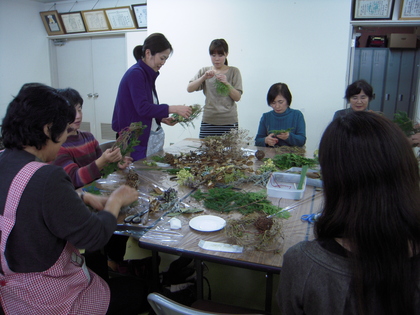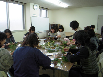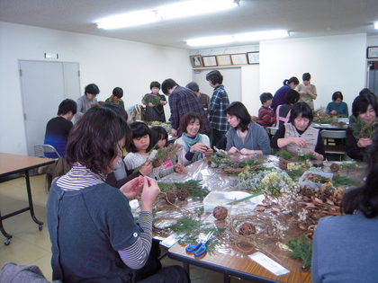 コニファーやまつぼっくりウバユリなどの素材も加わって
