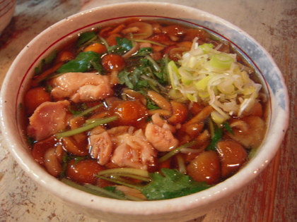 かしわ、なめこにみつばが入って