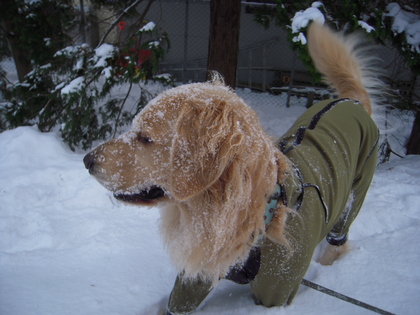お顔も雪だらけ~