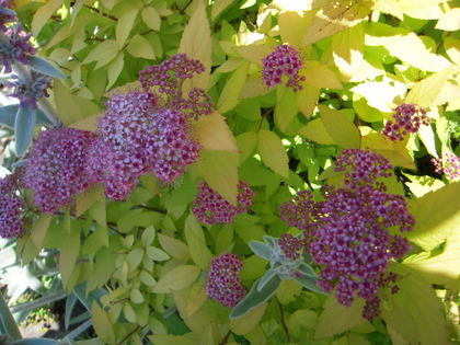 黄金シモツケの花が