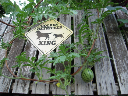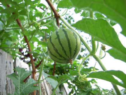 今年もスイカが柵のところで