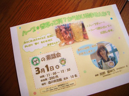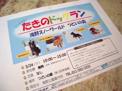 2013年02月27日 09時25分 イベントチラシ2つラビとママ 滝野すずらん公園のチラシ 2枚ご紹介です。 1つ目は あさって金曜の「森の茶話会」♪ 2つ目は たきのドッグランのお知らせ♪ よく見ると、、、 ラビ登場♪ みなさん遊びに来てね! (ラビはチラシの中だけ参加・・・) コメント(0)