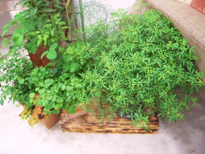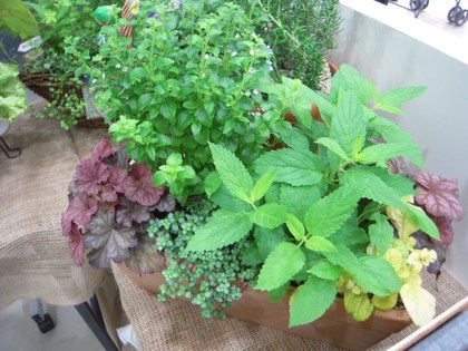 ハーブのコンテナを育てながら、