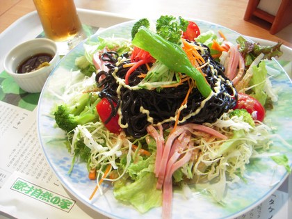 イカスミ麺のラーメンサラダ。