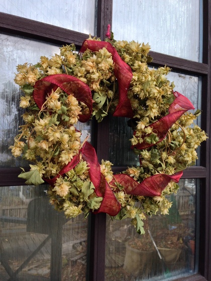 夏に作り置きしておいたホップのリースに