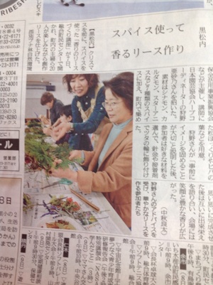 2013年12月11日 02時50分 道新に。 先週末の 黒松内町でのリース講座の様子が 道新の後志版に掲載されました〜 みなさんの作品、 どこに飾ったのかな♬ 穏やかな時間が流れる 年末月です。 コメント(0)
