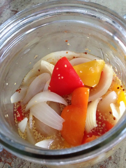 2014年01月30日 08時35分 ピクルス 玉ねぎ、パプリカの ピクルスを作りました。 かりのさんちのハーブビネガーの 自宅用在庫ものこりわずか。 ハーブビネガーがあるうちに いろいろ楽しもう〜 あたらしいものは秋に仕込んで 只今寝かせて熟成中です。 お酢は疲労回復効果が高いので 除雪疲れにピッタリ。 たくさん作ったので お友達におすそわけ。 コメント(0)