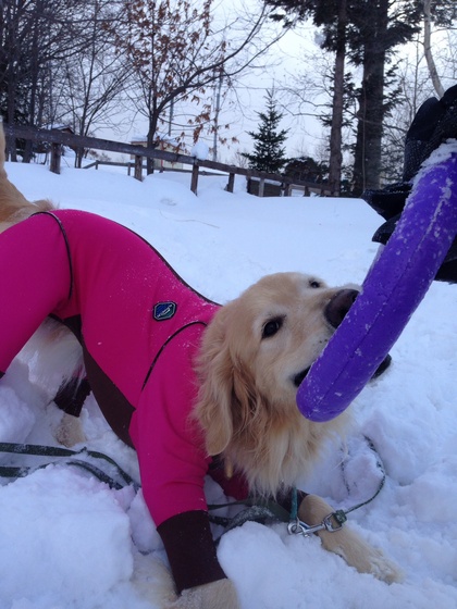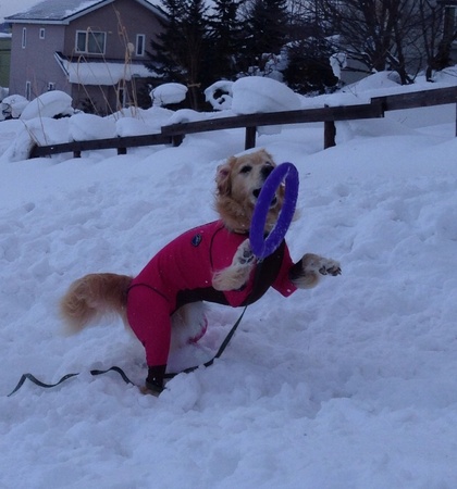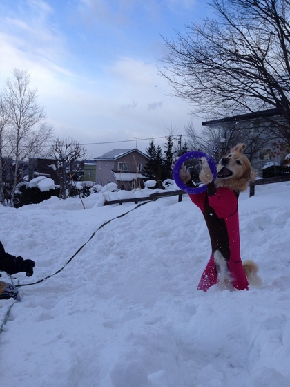 2014年02月05日 08時04分 氷点下二桁だけど 氷点下二桁は さすがに空気が ぴーんと引き締まっています。 そんな中 張り切って遊ぶラビッヂ。 プラーを引っ張って〜 クールダウンして〜 まるで ゴールキーパーみたい! たくさん遊びました。 風もないのに 顔が冷たくて凍りそうでした! 立春が過ぎたけど もう少し寒さとお付き合いですね。 コメント(0)
