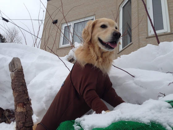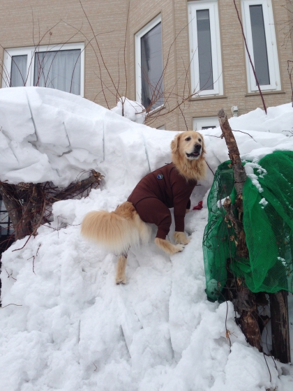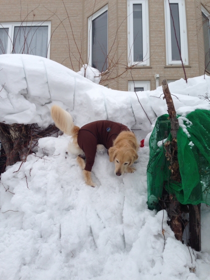 庭の雪山登り。