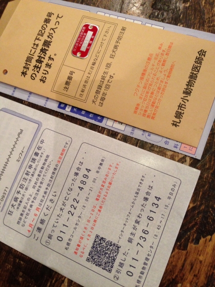 2014年04月02日 08時45分 ワクチン 狂犬病のワクチンに行ってきました。 首元にできた脂肪腫のようなしこりの検査もしてもらいました。 悪いものではないけれどすこし炎症もあるのでちょっぴり切開。 注射と切開、踏んだり蹴ったりのラビッヂはお疲れ気味。。?? みふぃの分も送られてきて 連絡していないことを思い出しました。 今年こそ電話しなくちゃ。 デザート皿とカップを新調しました。 黒ゴマ味のモンブラン、とっても美味しかったです。 コメント(2)