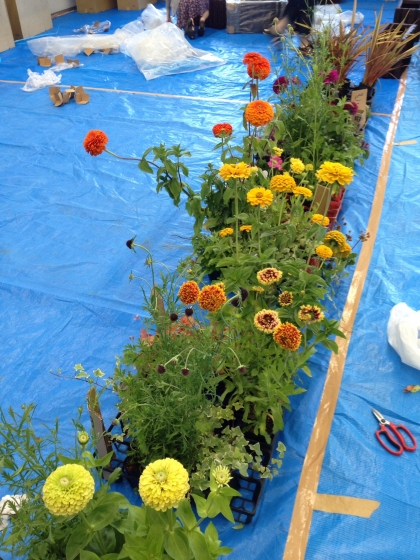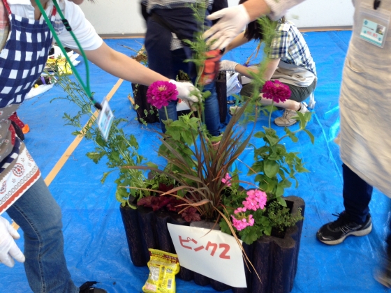 大型のコンテナの寄せ植えをつくる講座です。