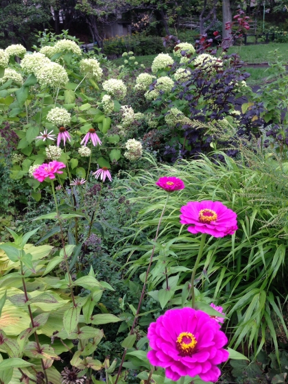 大きな円形花壇を囲みように植え込んだ