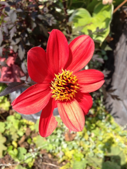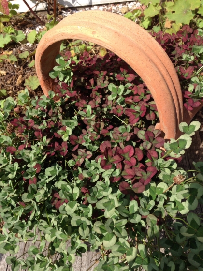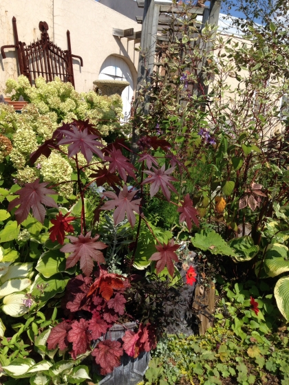 中央にあるワイン色の大きな葉は