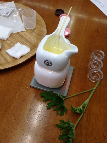 ローズゼラニウムに精油を使って