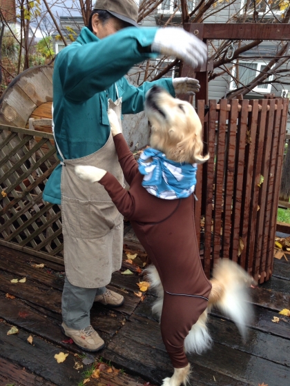 庭のブランコの片付けを