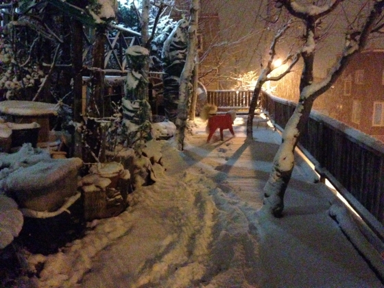 夜中から降り出した雪は