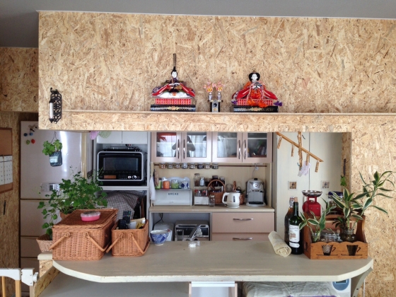 壁張りリフォームで作った我が家の棚に
