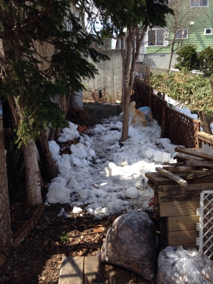 庭の北側の冬期通行止めも