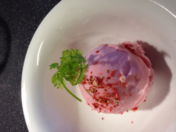 デザートはイチゴアイスでした。