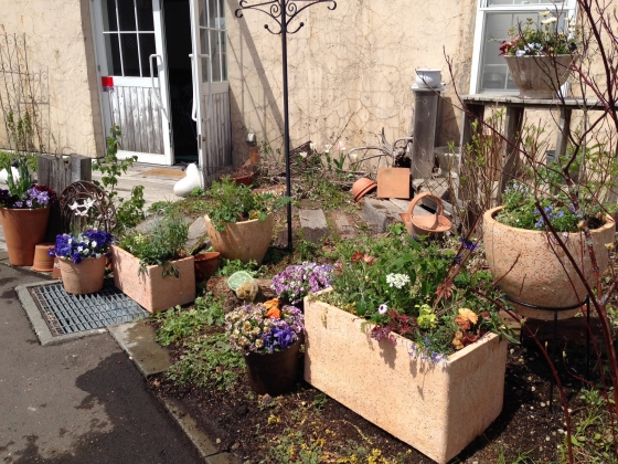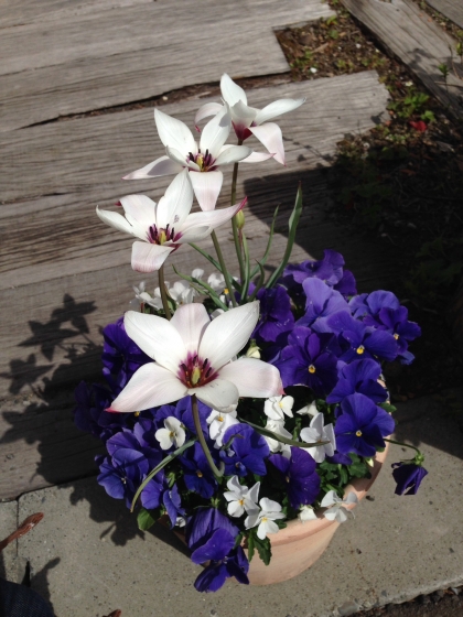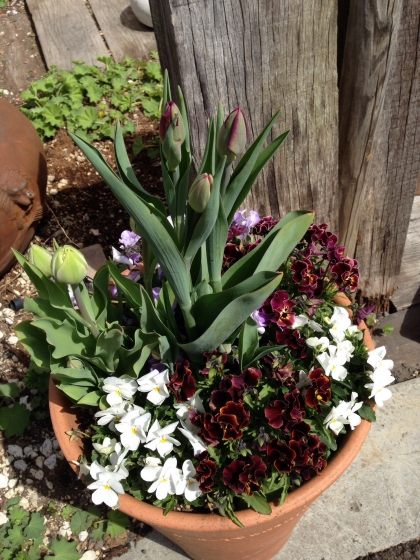 先月植えたパンジーやチューリップが