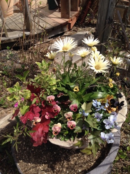 大型のコンテナに寄せ植えしています。