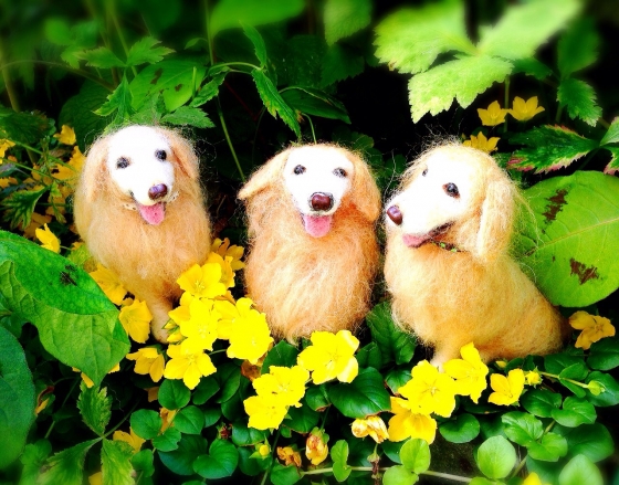 ロン、みふぃ、ラビッヂのフエルトドッグを