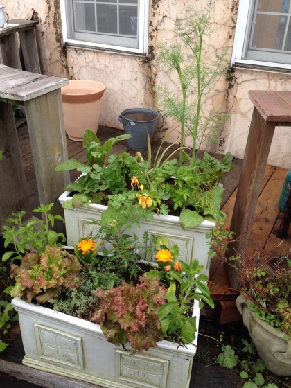 5月下旬に植え込みしたハーブコンテナ。
