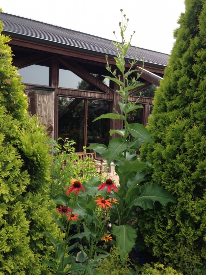 エキナセアの後ろにそびえたつ