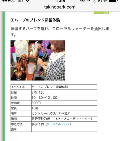 8月5日のハーブ蒸留体験講座に