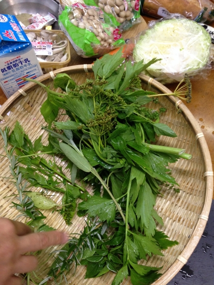 こんなに入れるの?のハーブをお鍋に投入して