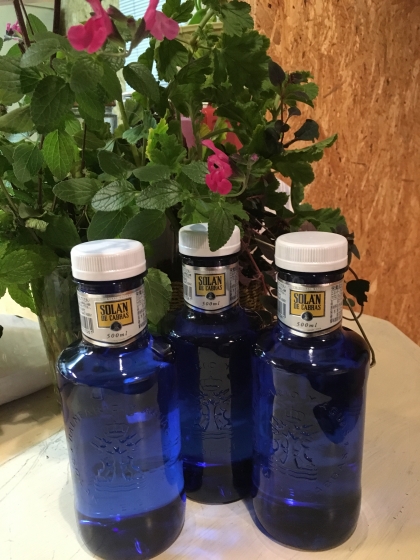 ブルーのペットボトルに入った