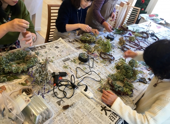 2015年11月27日 06時06分 リース講座3回目 リース講座3回目は土屋ホームモデルハウスが会場です。 私のリース講座はいつも材料選び放題(笑) 参加費もお得(笑) みなさんに思う存分楽しんで頂くために春からいろいろなものをドライにしたり松ぼっくりを拾ったり〜今回もたくさん用意しましたp(^_^)q ワイワイ盛り上がりながら2時間ちょっとで完成(^O^)/ みんなで簡単なランチを囲みおしゃべりも盛り上がり〜 ご自宅で飾るのを楽しみに帰られました。 楽しいクリスマスまでの毎日をお過ごしくださいね、 コメント(0)
