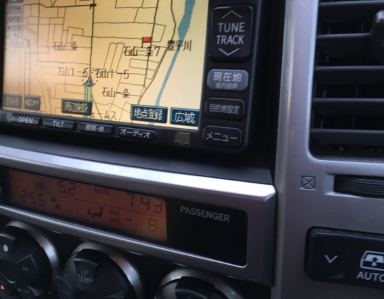 車の温度計は−8℃でした。