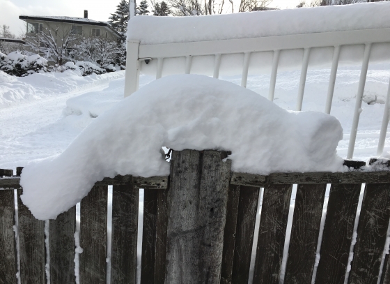 柵の上の雪が