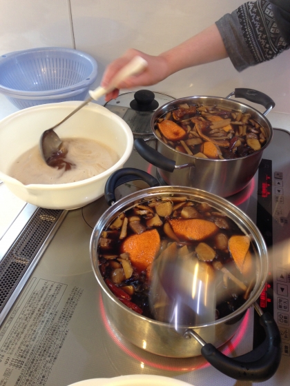 手作りの陳皮も加えて煮込む
