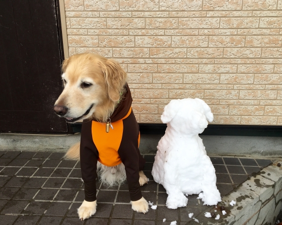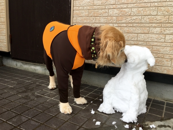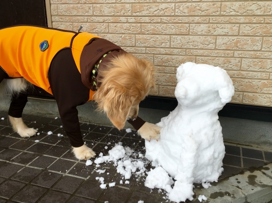 2016年03月28日 05時11分 積もるなごり雪 先週は3月下旬だというのに(≧∇≦)10センチは積もりました。 雪が積もれば庭遊びも全速力で走って遊べるのでラビ子は大喜びU^ェ^U 走ったあとはお顔を雪でクールダウンが定番です。 せっかくのべた雪なので(笑)ラビ子のお友達を製作しました。 お鼻でご挨拶をしてみるラビ子。。。 肩に手をかけたら崩れちゃった(≧∇≦) コメント(0)