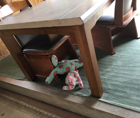テーブルの下だよ。