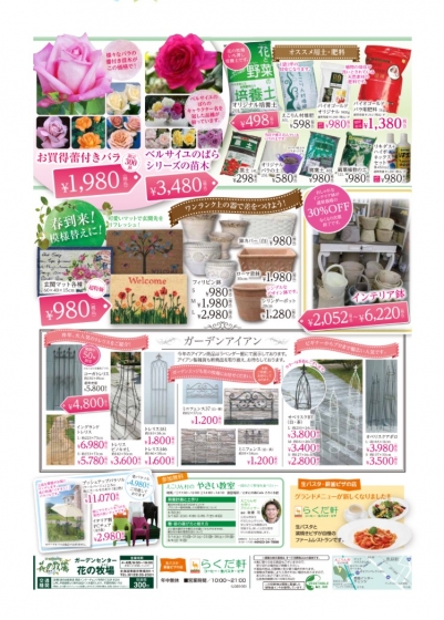 2016年05月01日 05時21分 寒い連休 道東では積雪となったゴールデンウィーク、ラビ地方も肌寒いです。 冷たい雨にラビ子もどーんより(≧∇≦) 花の牧場のチラシです。 たくさんのお買い得品が紹介されている中、 ハーブコンシェルジュを大きく紹介して頂いていますp(^_^)qありがたいです〜 ハーブ以外にも苗選びに迷う時などアドバイス致します。 売り場でのコンシェルジュの初日は3日です。 見かけたら声かけてくださいね。 コメント(0)