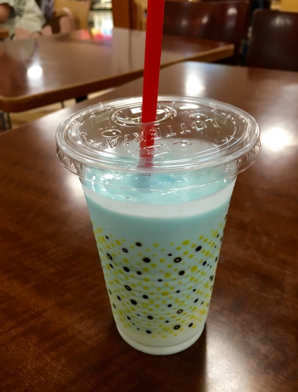 おしゃべりタイムにロッテリアのラムネシェイク。