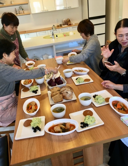 2016年10月29日 05時18分 講座続き 今週は講座が続いています。 ローションとクリーム作りをしてからランチタイムです。 フレッシュのラヒッジが入ったポテトサラダの色合いが鮮やかでスープも大人気(^.^) 先日作った洋梨のコンポートもデザートに登場です。 今話題のモリンガのお茶もみなさんに好評でしたよ〜 おやつの差し入れをいただきました。 ラビ用のおやつも(^○^) ラビは、、、ぬいぐるみに紛れて寝ています(笑)なにかに囲まれていると安心するようです。 ご機嫌うるわしゅう(笑) コメント(0)